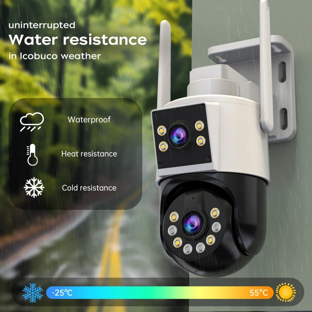 Câmara de Vigilância Exterior Jortan com Visão Nocturna a CoresA câmara de segurança Jortan foi desenvolvida para proporcionar uma vigilância eficiente e contínua em ambientes interiores e exteriores. Com alta definição e visão noturna colorida, garante imagens claras mesmo em condições de baixa luminosidade. Resistente às intempéries, é perfeita para proteger a sua casa ou empresa.Características:Resolução HD para imagens nítidas e detalhadasVisão noturna com infravermelhos e LED branco (modo cor e modo noturno)Sensor fotosensível com comutação automática dia/noiteClassificação IP66: resistente à água e ao póÁudio bidirecional com microfone e altifalante integradosLigação via Wi-Fi com antenas externas para melhor alcanceEntrada para cartão TF (MicroSD) para gravação localInterface de rede para ligação com fioInstalação em teto ou paredeBenefícios:Monitorização clara mesmo no escuro com visão noturna coloridaComunicação em tempo real com som bidirecionalIdeal para uso exterior graças à proteção IP66Fácil integração com apps de controlo remotoPermite gravar e aceder às imagens remotamenteUma câmara robusta, inteligente e prática para quem procura máxima proteção e tranquilidade.
