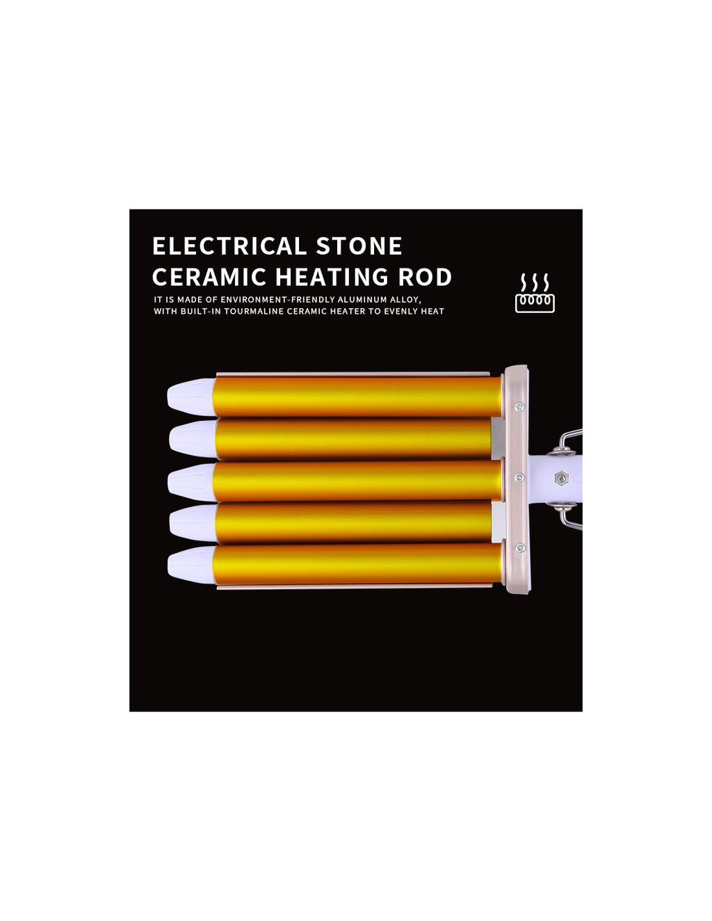 Modelador de Cabelo Multifuncional QA-CF29 – Ondas Perfeitas e ElegantesObtenha o penteado dos seus sonhos com o Modelador de Cabelo QA-CF29. Ideal para criar ondas volumosas e duradouras, este modelador de cinco tubos é perfeito para quem deseja estilo e praticidade.Características Principais:Cinco Tubos Aquecidos:Permite criar ondas suaves e naturais em poucos minutos.Aquecimento Rápido:Atinge a temperatura ideal em segundos, poupando tempo na preparação.Temperatura Ajustável:Adapta-se a diferentes tipos de cabelo para maior proteção e resultados eficazes.Revestimento Cerâmico:Protege o cabelo contra danos e distribui o calor uniformemente.Benefícios:Ideal para todos os tipos de cabelo, desde os mais finos aos mais espessos.Crie uma variedade de estilos, desde ondas naturais a penteados glamorosos.Design ergonómico e fácil de usar, garantindo conforto durante o uso.Especificações Técnicas:Modelo:QA-CF29Número de Tubos:5Revestimento:CerâmicoAquecimento Máximo:220°CVoltagem:110V-240VPeso:550g